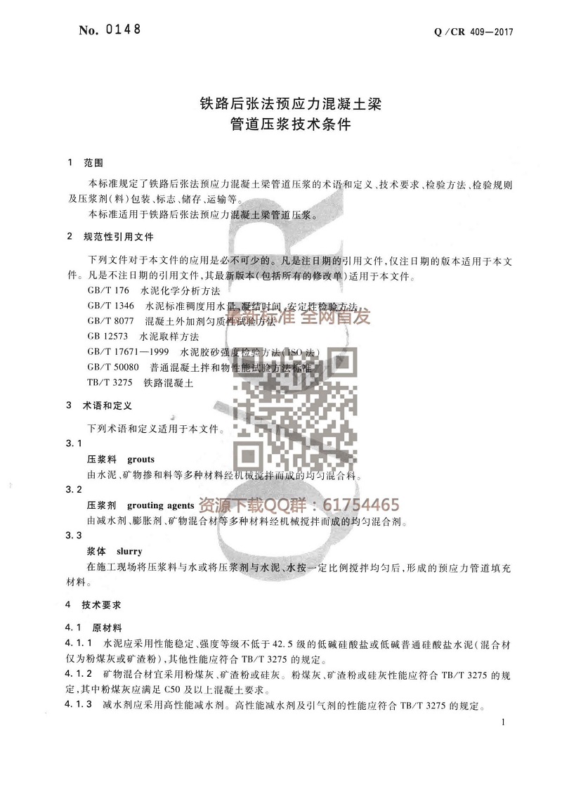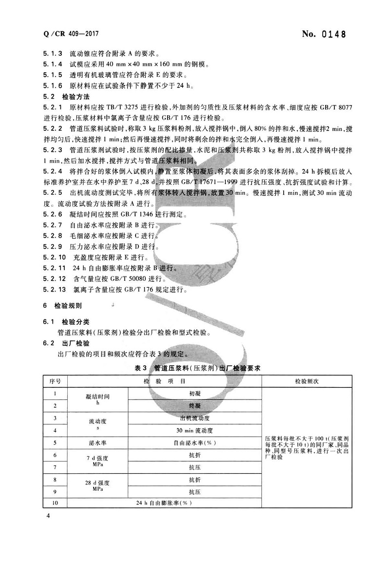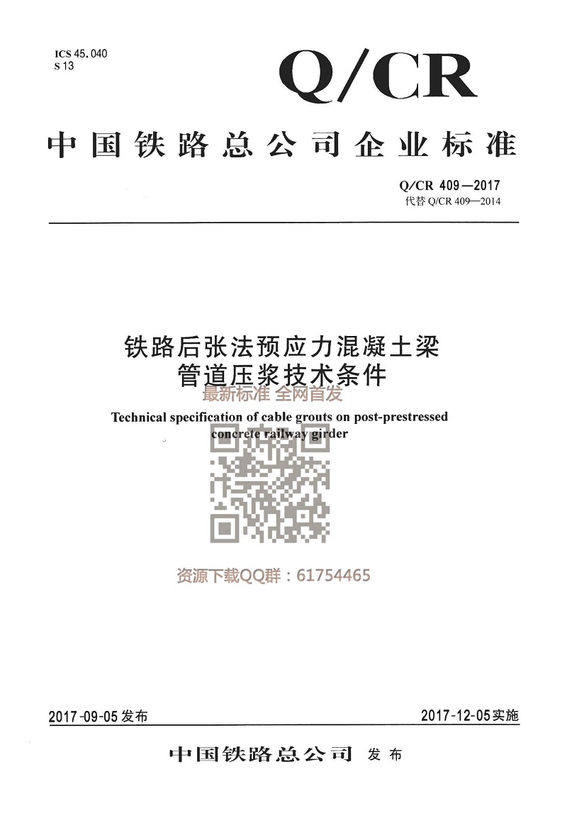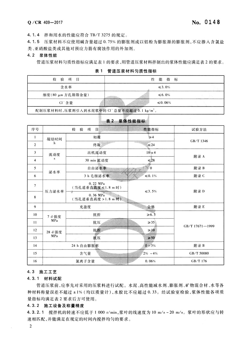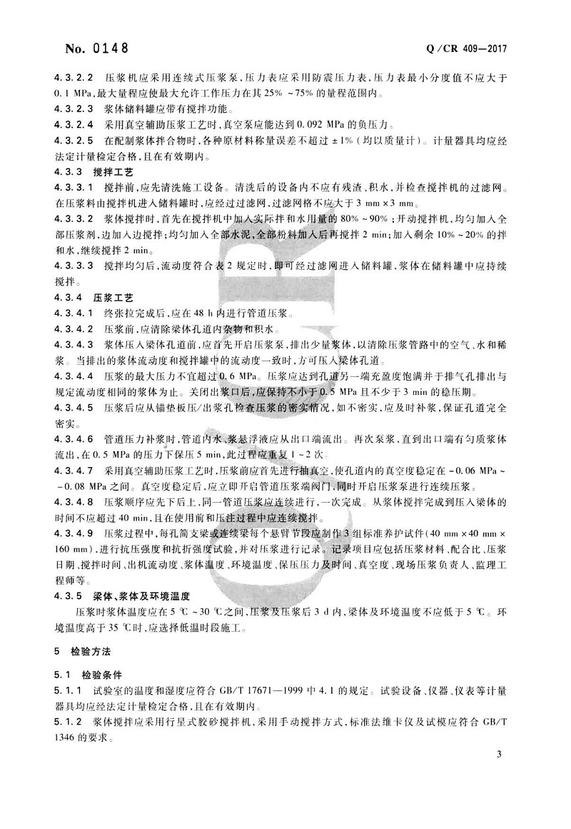鐵路后張法預(yù)應(yīng)力混凝土梁管道壓漿技術(shù)條件